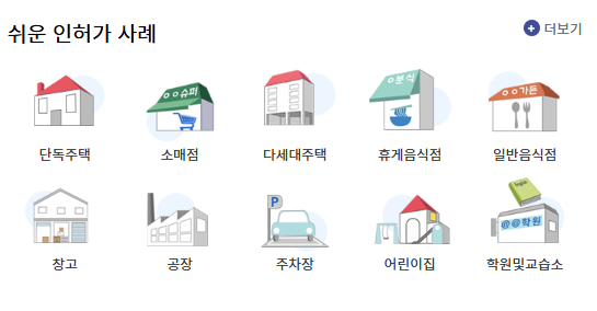 내가 검색하고자 하는 장소의 주소를 입력합니다. 그리고 검색버튼을 클릭해 주면, 해당 주소의 토지관리과나 행정부서의 연락처가 자동으로 업데이트되어 표시됩니다. 더 궁금한 문의 사항이 있다면 유선 전화로 연락해 보실 수 있겠죠? 오른쪽 하단에 쉬운 인허가 사례라는 메뉴를 통해 해당되는 사항을 쉽게 배워볼 수 있는 코너도 마련되어 있습니다.